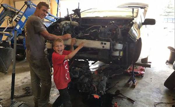 據(jù)英國(guó)《每日郵報(bào)》3月12日?qǐng)?bào)道,2016年7月,美國(guó)愛(ài)達(dá)荷州舒格城的8歲男孩小派克(J.T. Parker)正在家中幫助父親史蒂芬 派克(Stephen Parker)修車,沒(méi)想到意外突然發(fā)生,重達(dá)3000磅(約1361千克)的車子打滑后壓在了父親身上。